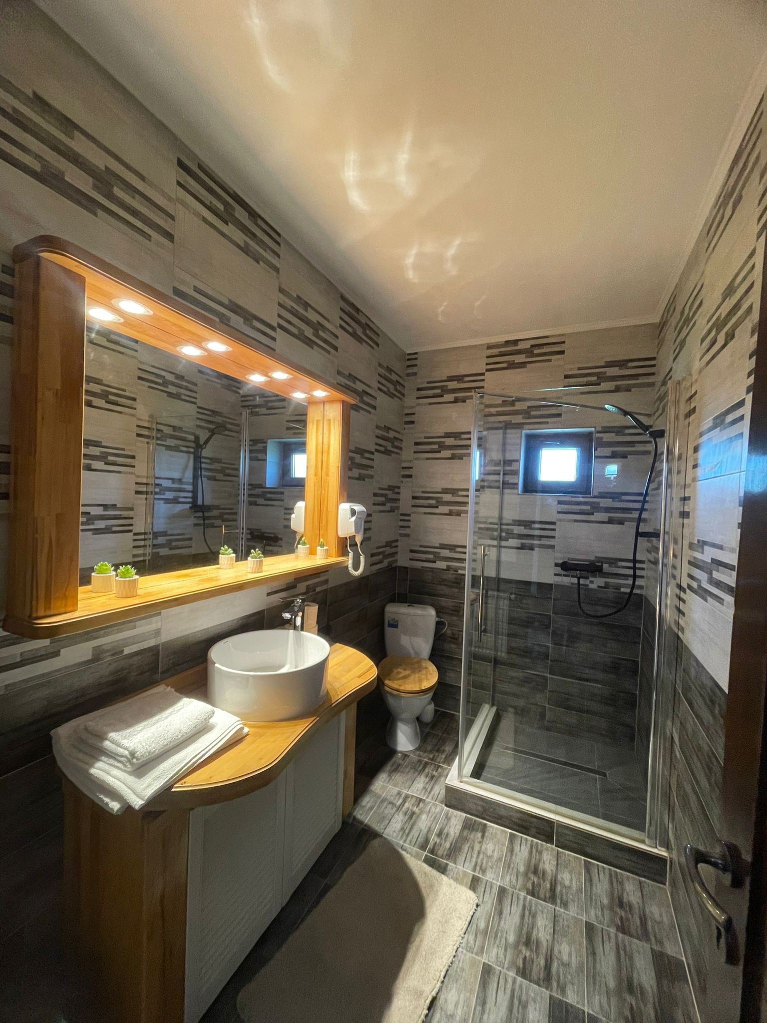 Bucurați-vă de o oază de liniște și relaxare în aceaste camere luminoase, cu vedere spectaculoasă către munți. Cu un pat dublu mare și o suprafață de 25 m², aceste camere vă oferă tot confortul necesar. Dotate cu balcon propriu, TV cu ecran plat, WiFi gratuit și baie, sunt locul ideal pentru a savura frumusețea naturii.